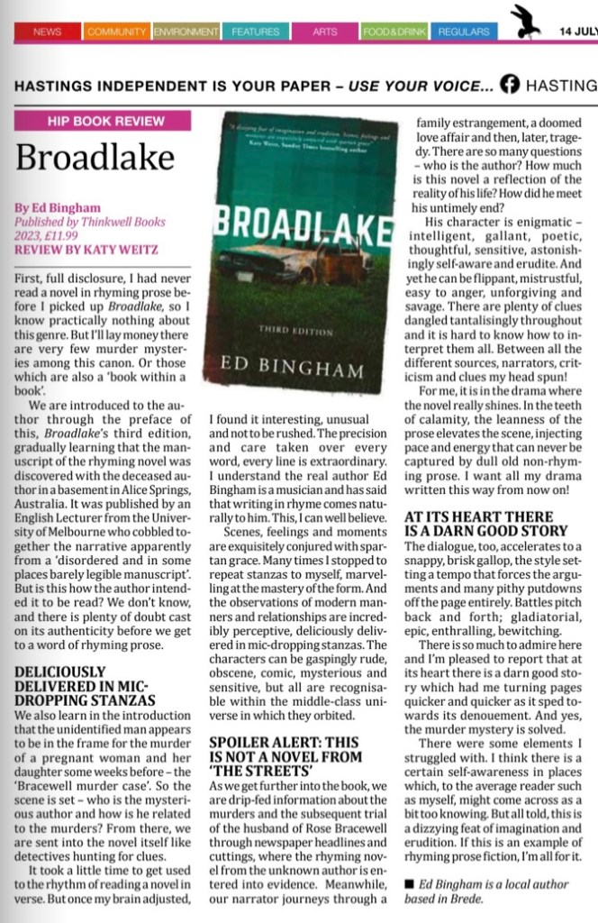 “Ed Bingham, the maestro behind the manuscript, effortlessly orchestrates words in rhyme, proving that writing in verse is a natural groove for this musical wordsmith. But it’s the drama that truly ignites the pages – lean prose that crackles with life, infusing each scene with an unmatchable vitality. The story’s teeth are bared in calamity, injecting a pulse and verve that only rhyming prose can muster. This is the kind of drama I crave – electric, alive and thoroughly thrilling. A literary experience worth savouring.” Literary Gents, Bookstagram